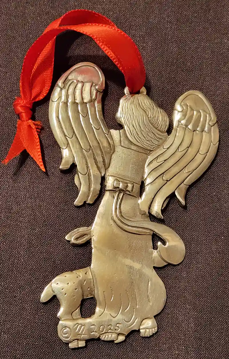 Each Angel comes with a 3” long red satin ribbon so they’re ready to be hung and enjoyed. All have Mark’s personal signature stamp with the year of creation so this particular holiday will be remembered for years to come.