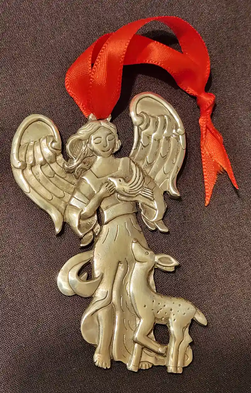This 2020 Angel is releasing a dove who will bring a holiday sign of hope and peace to all. Dimensions: 3 ½”H x 2 1/2”W x 2mmD.